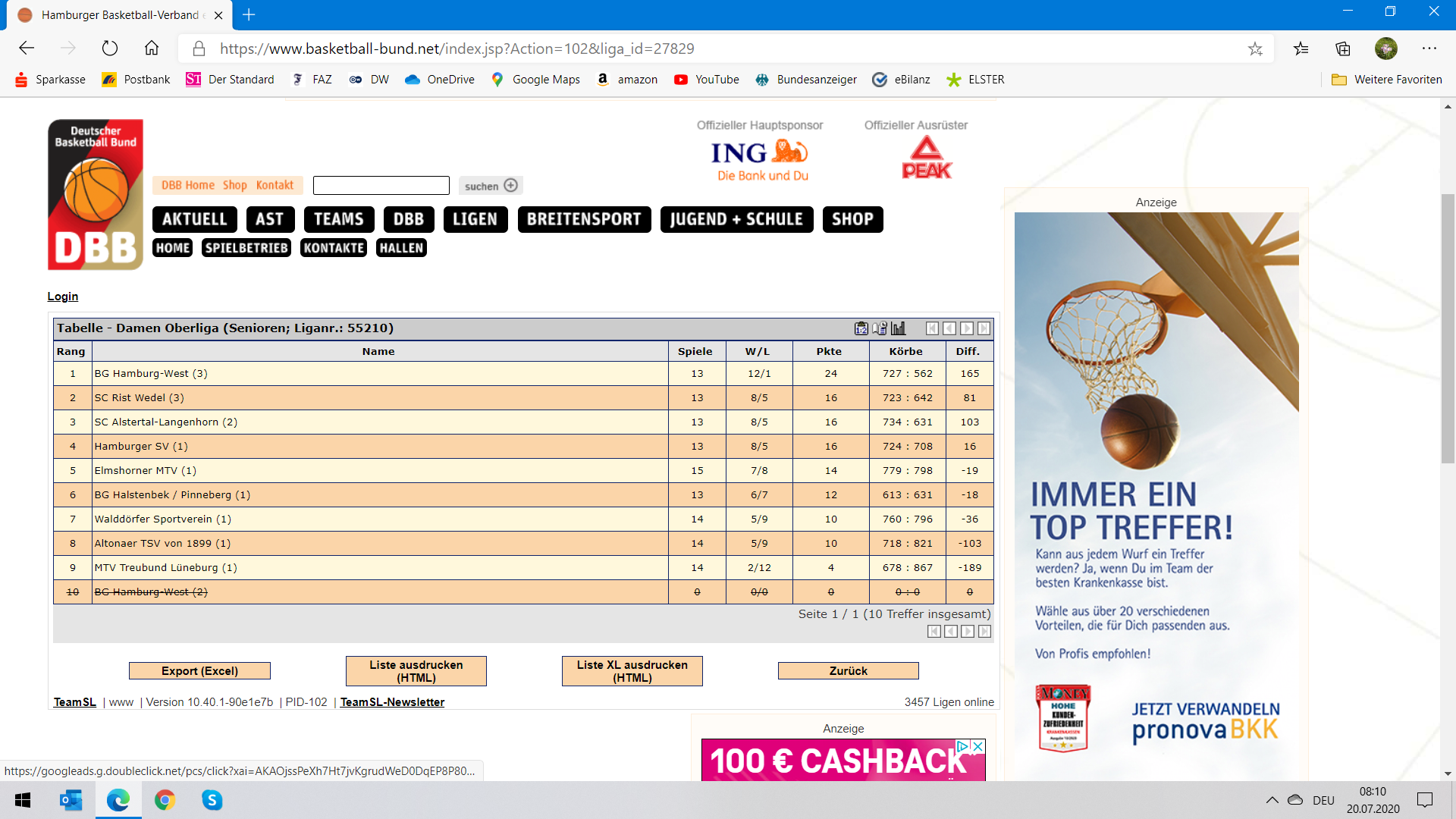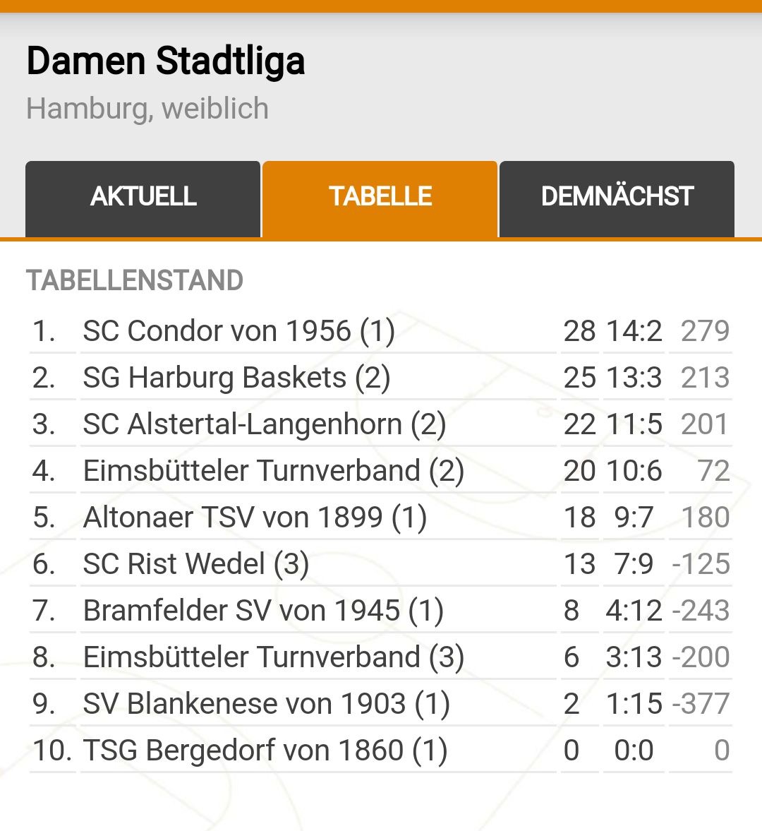 Abschlusstabellen Damen